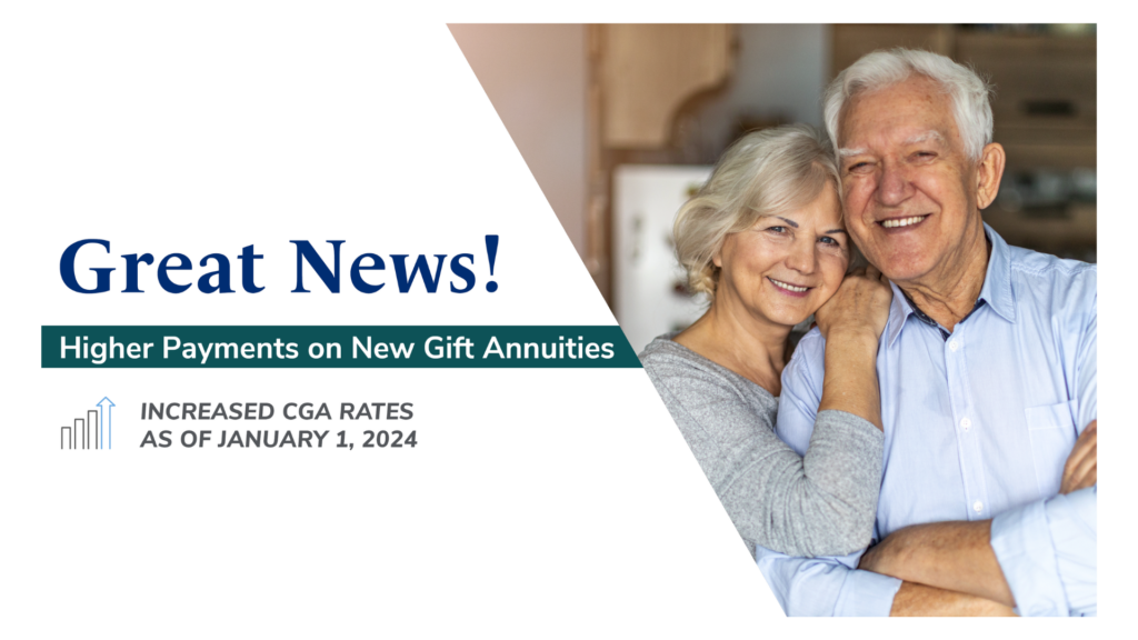 Now, thanks to an increase in annuity rates, any new charitable gift annuities that you establish after January 1, 2024, will result in even higher payments!